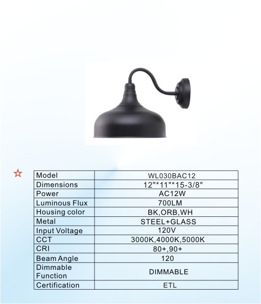 产品名称:WL030BAC12
